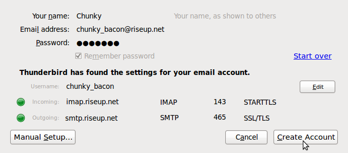 thunderbird将从 riseup’s服务器取得配置。